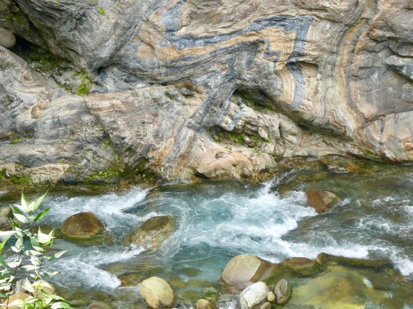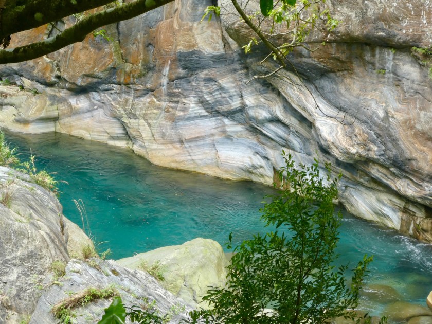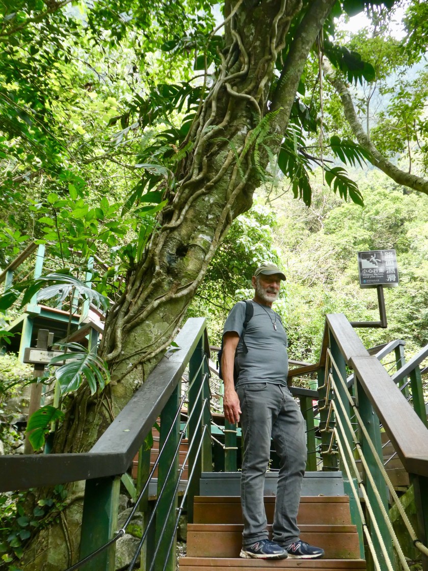 The hotel took us to the Taroko National Park bus stop and within 30 minutes we were hiking the gorge. The Shakadang River waters are crystal clear, the surrounding mountains steep and picturesque. We hiked the Shakadang trail and a trail to the visitor center for a total of 7 miles. These trails are loaded with tourists but still quite scenic. There were lots of beautiful butterflies, flowers, large leafy greenery, and twisted vines and roots.