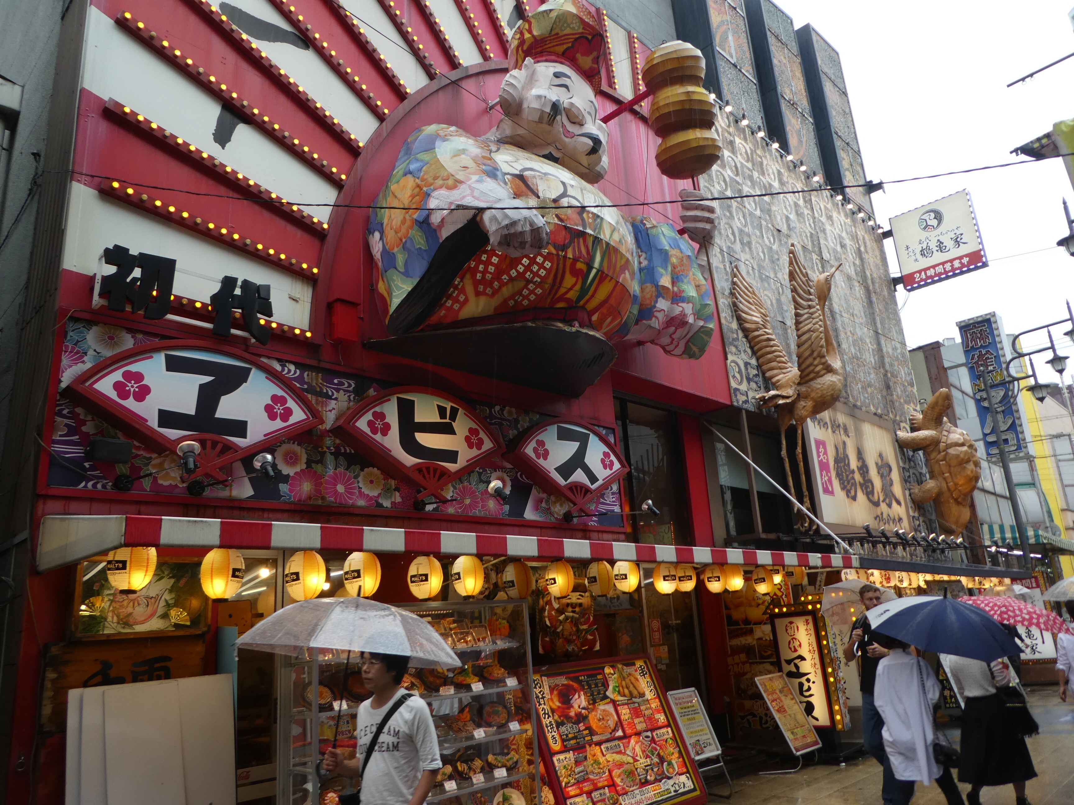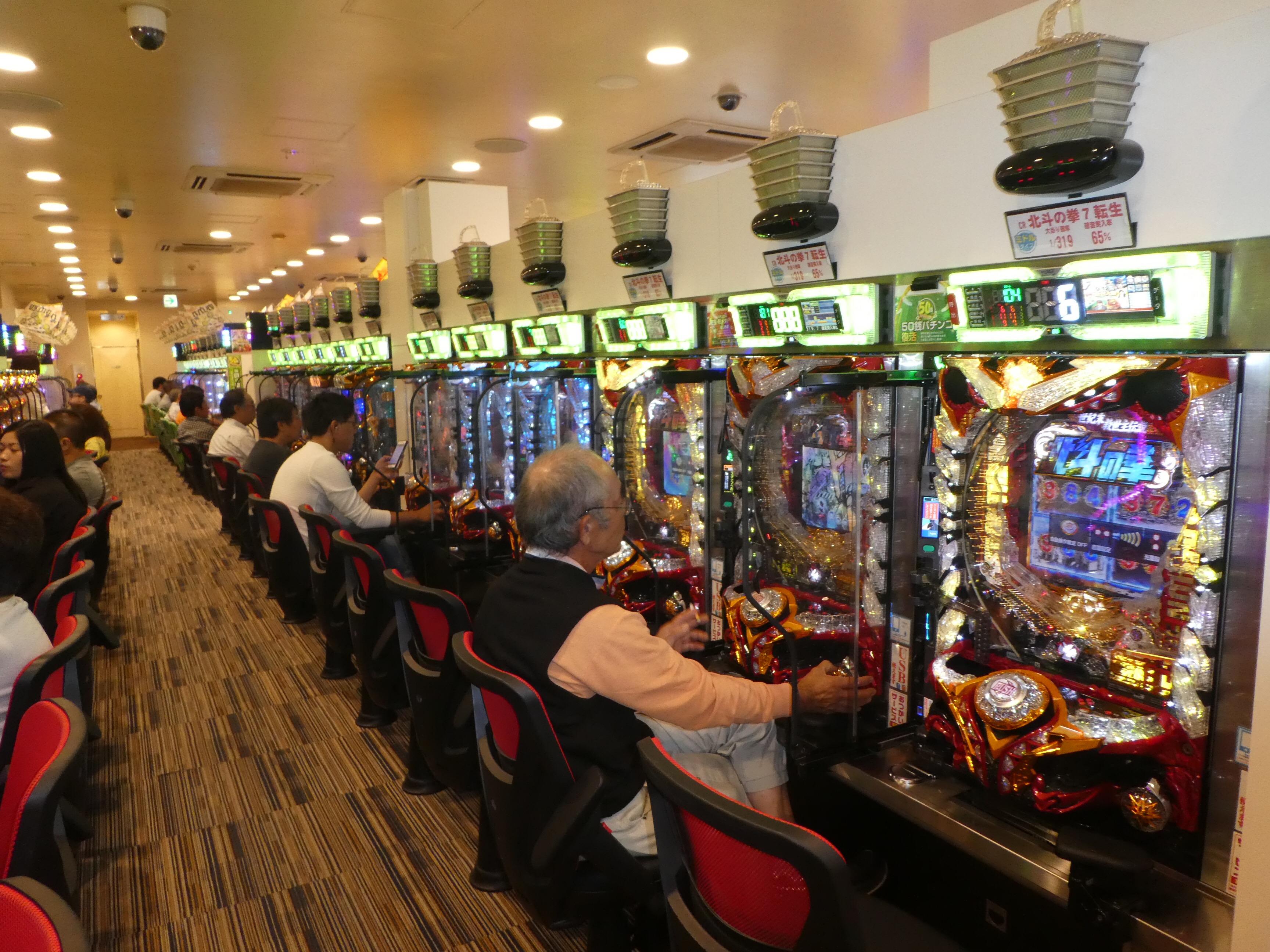 There are karaoke bars in every neighborhood and pachinko gambling halls here and there. We checked out a pachinko parlor and were overwhelmed with the smell of cigarette smoke. A Pachinko game looks like an upright pinball machine. When Bruce was here about thirty-five years ago, the prizes were cigarettes. Now, there are a variety of prizes available. Game places with rows of older electronic games like “Centipede,” are also popular.