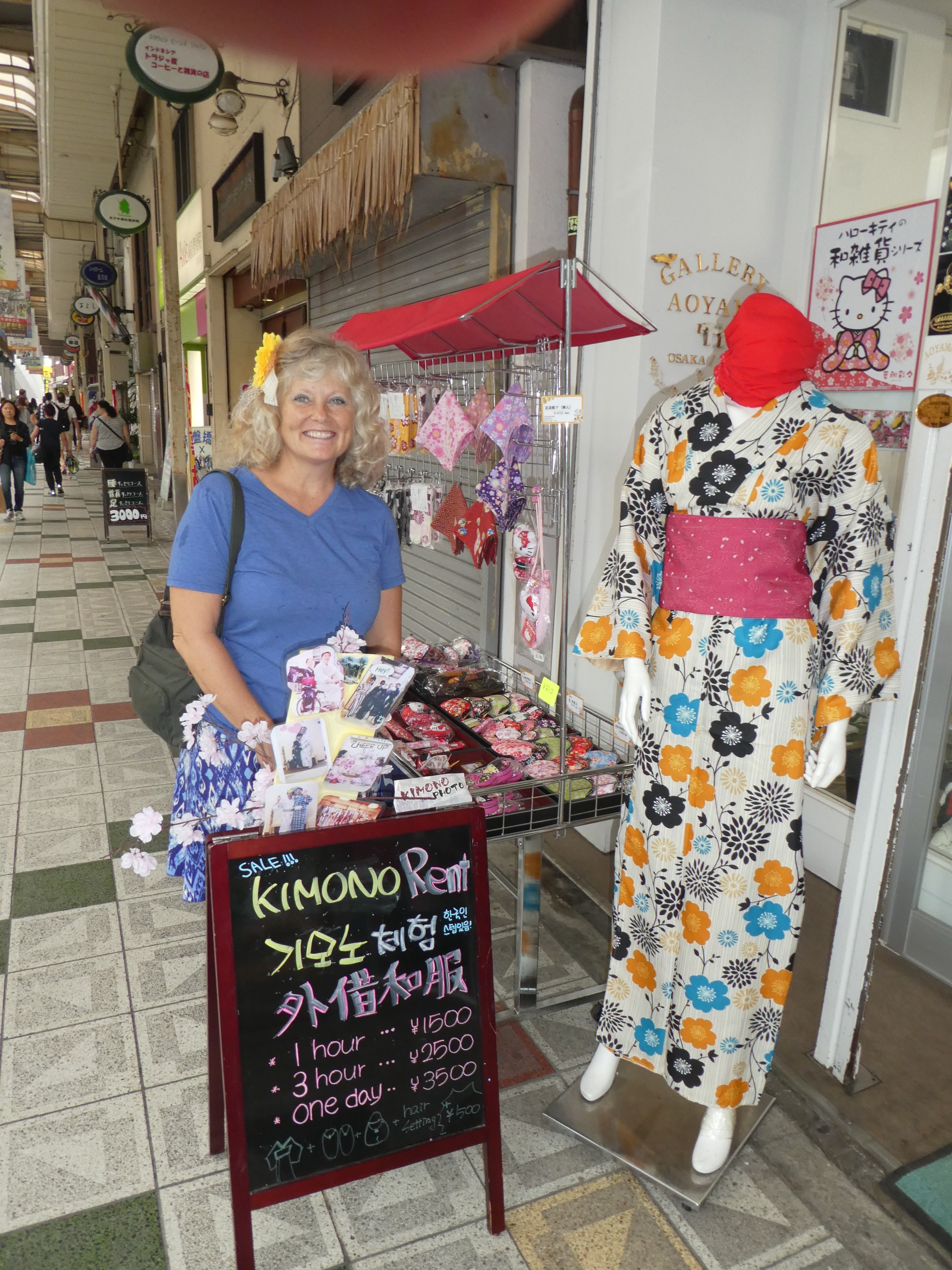 Our hotel room was tiny, but so neatly arranged, and a steal at $65 a night, including a delicious buffet breakfast. The breakfast included rice, salad, miso soup, juice, bread and coffee, every day, and sometimes scrambled eggs. The front desk presented Linda with rose bath salts for the deep tub she enjoyed, and a rose water facial mask. They had the usual toiletries, and in addition, offered complimentary sanitized (striped) pajamas!