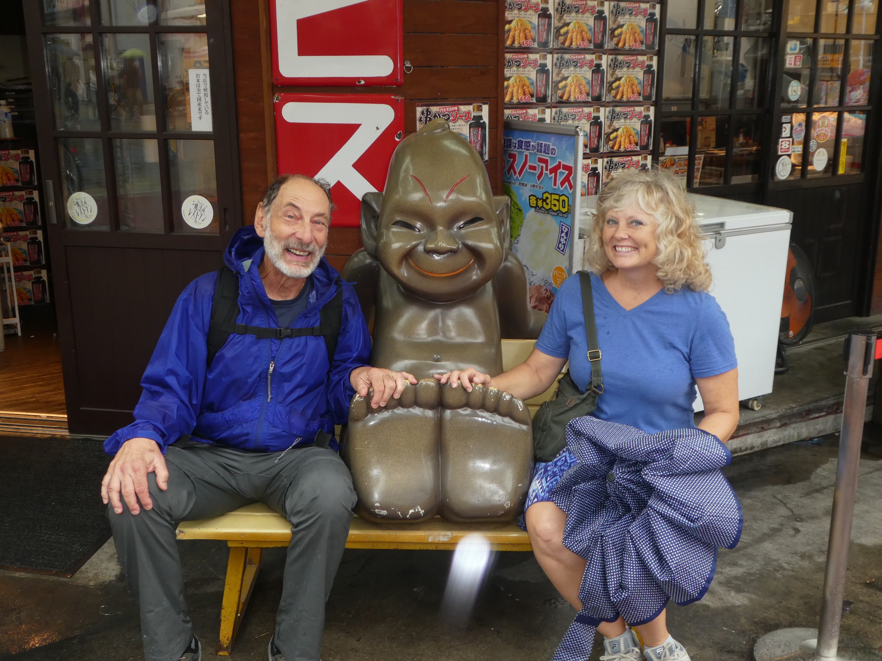 Unlike in Vietnam, in Japan, we can drink and brush our teeth with the tap water and the plumbing is good. Restrooms are free, and available everywhere. “Toitie time” is something else! Inside the stalls, there are containers of special sanitizer for the seat. There is an arm with push buttons on one side of the seat, mostly written in Japanese, but we figured it out. One button makes the room fill with the sound of running water, and there is volume control, for all of the shy folks out there. Toilet seats are heated, and include a water option to help clean you after usage, with stream, spray, and pulse options available, and then a gentle blow-dry. 👀
