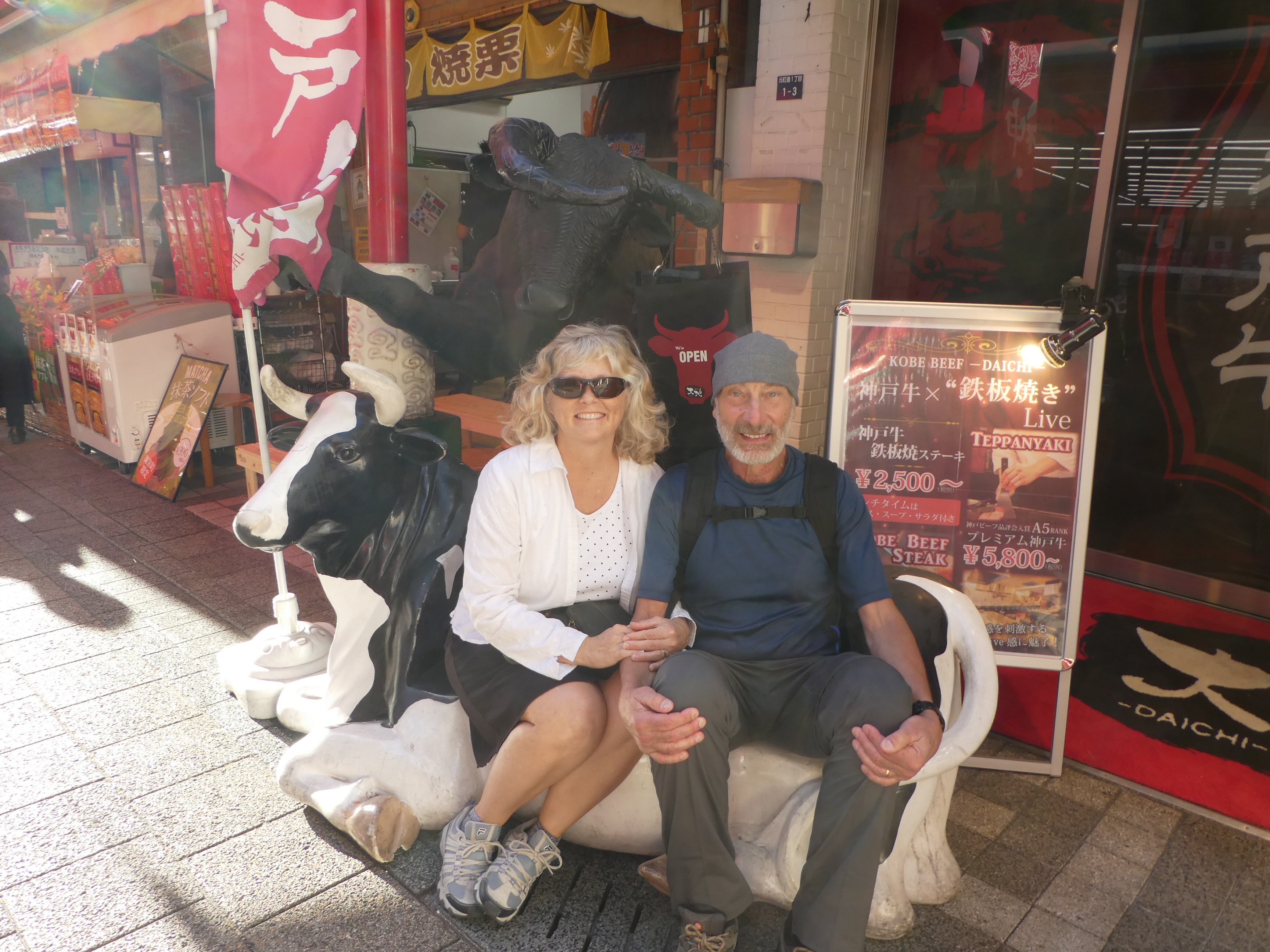 Kobe, a gorgeous port city, was fun to walk around. The city and the port were immaculate. We watched cruise ships come in. Streets are crowded at times, but not at all dangerous. You rarely hear the sound of a horn. People wait patiently at crosswalks for the light to change. A good natured spirit prevails. Most people are very fashionably dressed. Even backpacks are trendy and artfully designed. Lots of men carry soft leather briefcases, backpacks, shoulder bags, and even purses here. Kobe is famous for its beef, which is super expensive. It is marbled with fat that makes it very tender. We tried some, but it was a bit rich for us-pardon the pun! 😜 We saw a memorial for the 1995 earthquake that devastated Kobe and claimed more than 47000 lives.